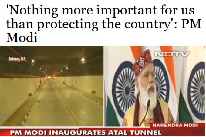 “有了它,‘拉达克地区’以及喜马偕尔邦将与印度其他地区保持联系,并将在发展的道路上迅速前进。”他说。