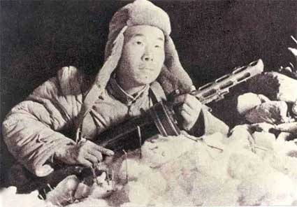 ◆我志愿军攻占死鹰岭后,美军死命反扑,志愿军战士死守阵地,战斗到最后一个人。图为在零下30摄氏度的严寒下,坚守的志愿军战士。