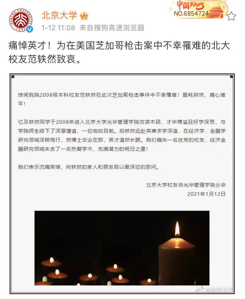 芝加哥大学布斯商学院曾发公告称,他是一名聪明又极具天赋的学生, 受到同学们爱戴。没有意外发生的话,范轶然原本计划在今年提交他的博士论文。