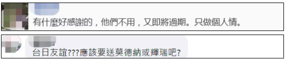 不少岛内网友批评谢长廷:“演戏很会啦,恶心。”“这场戏演完了,回归现实,其他疫苗缺口怎么办?!”↓有网友讽刺:小夫(谢长廷)养摄影师花的费用,真是值得啊!↓还有网友质疑“台日友谊”:“应该要送莫德纳或辉瑞吧?”“有什么好感谢的,他们不用,又即将过期。只做个人情。” ↓