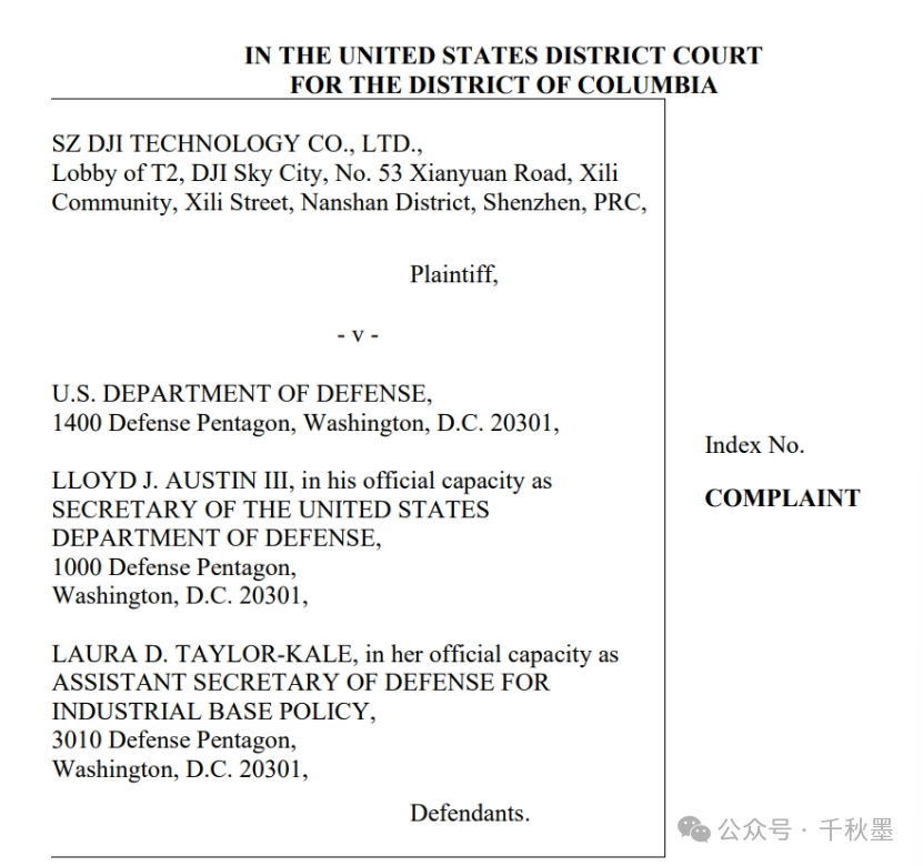 10月18日,大疆无人机就被错误列入CMC制裁清单一事在美国哥伦比亚地区法院对美国国防部提起诉讼。