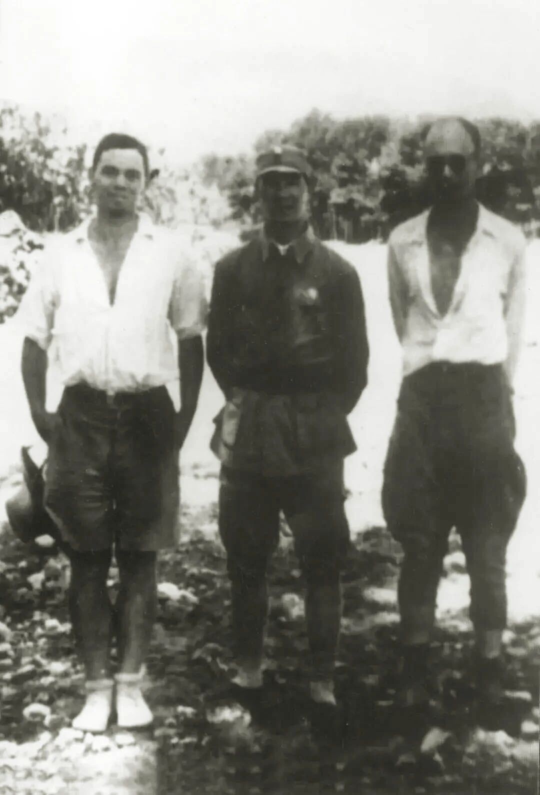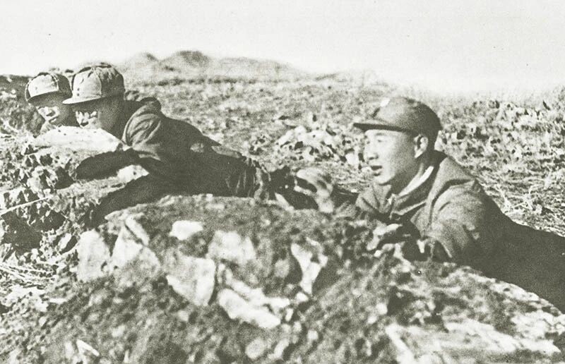 ◆晋察冀军区一分区司令员杨成武(右)、副司令员高鹏(中)、政委罗元发(左)在指挥战斗。