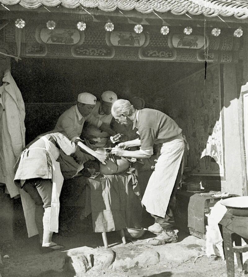 见面后,杨成武发现白求恩身体不太好,神情疲倦,握手不如以前那么有力了,指间还包裹着白纱布,像是刀伤。