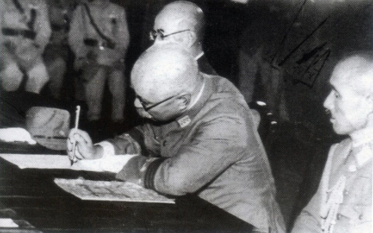 ▲1945年10月25日,日本驻台总督安藤利吉在投降书上签字。
