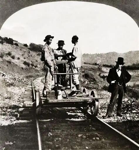 ▲ 1869年,横跨美洲大陆的第一条铁路——太平洋铁路完工,这其中凝结着超过1.2万名华工的血泪。