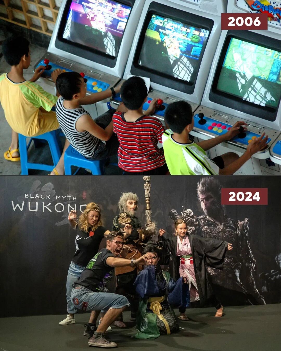 下图:2024年,中国首款3A游戏《黑神话:悟空》在德国科隆国际游戏展强力吸粉。