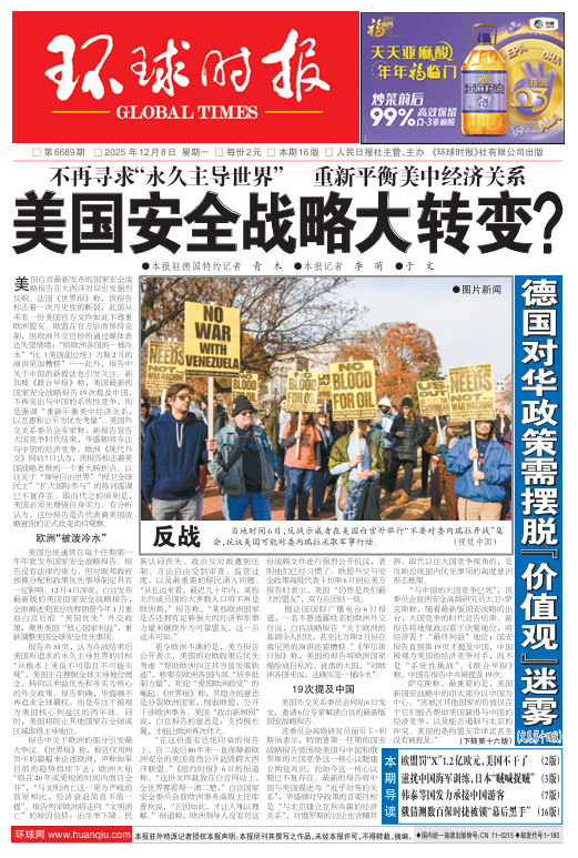 美国最新国家安全战略报告关于中国的措辞和以往不同,但外交学院教授李海东7日告诉《环球时报》记者,这并不意味着美国放弃了其原有的战略竞争思维,而是改变了语言表达方式和关键行动区域。如果仔细阅读美方报告中关于西半球以及科技和经济领域的部分,会发现虽然报告没有明确说要与中国竞争,但字里行间反复强调,在西半球的科技和供应链等领域,要有力排除那些域外竞争国家或对美国利益构成威胁的因素。这种信息十分明显,表明对华的战略竞争思维依然存在,只是将竞争区域从全球转向了聚焦西半球,这是一个显著的变化。