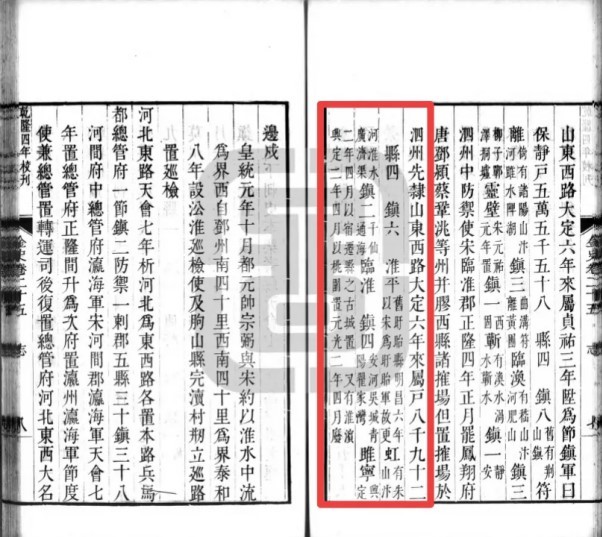 笔者查阅《元胜览》,淮安路下辖的县名赫然镌刻“桃源”而非《元史·地理志》中的“桃园”。前文中,专家考证《元胜览》保留了元大德七年(1303年)全国政区建置名称。也就是说最迟在大德七年,已有“桃源县”的建置,此时离包括今泗阳在内的南宋淮北地区省元仅27年。