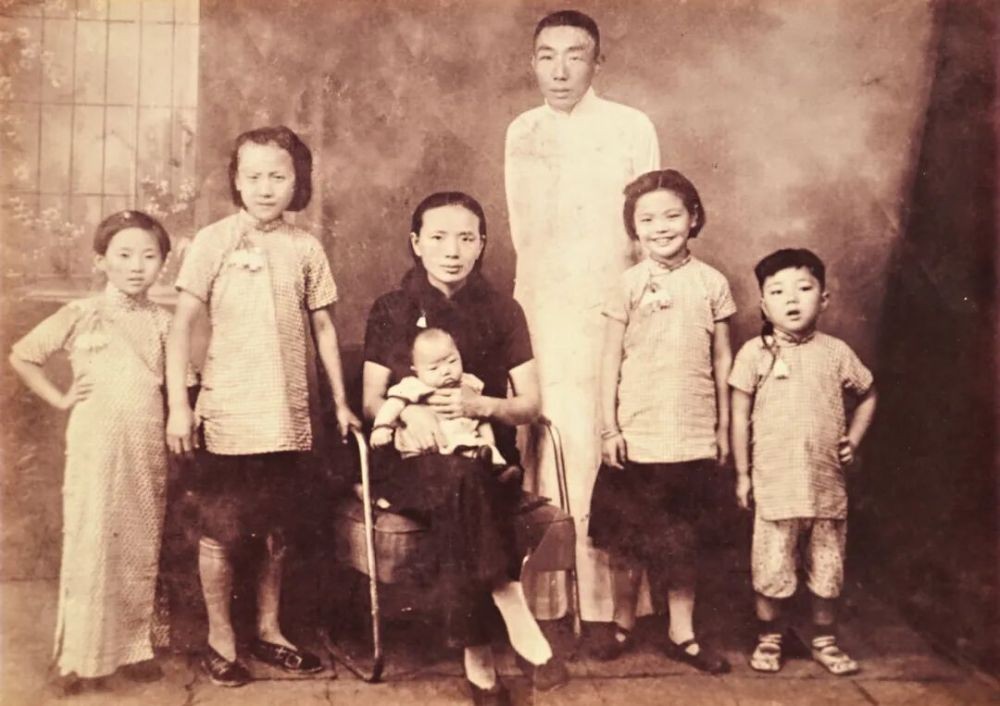 1945年,夏淑琴(左二)和妹妹(左一)与舅舅一家合影(翻拍照片)。新华社记者 季春鹏 摄