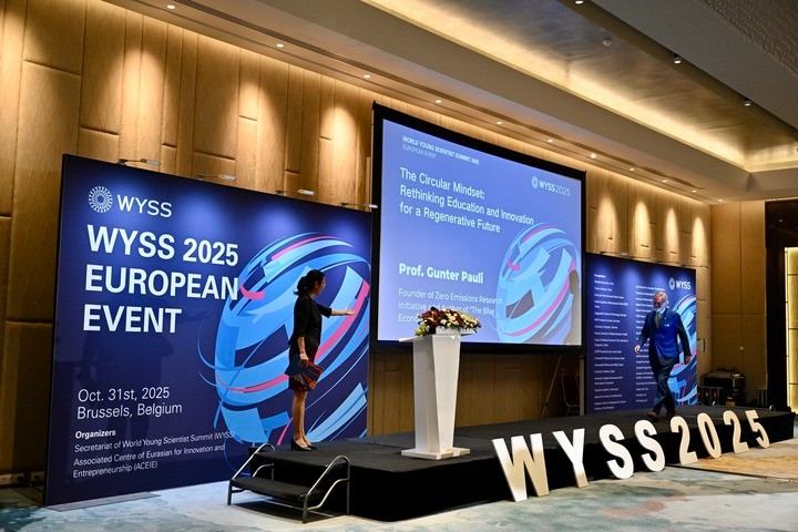 这是10月31日在比利时布鲁塞尔拍摄的2025年世界青年科学家峰会欧洲专场活动现场。(新华社)