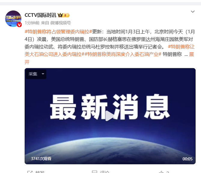 当地时间1月3日,美国总统特朗普就对委内瑞拉的军事行动发表声明。特朗普表示,美军在行动中使用了空中、陆地和海上力量。特朗普称,“这是美国军事实力和能力最令人震惊、最有效、最有力的展示之一。”