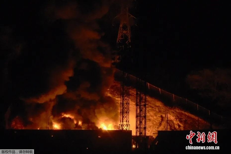 图为当地时间1月3日,委内瑞拉首都加拉加斯发生一系列爆炸后,委内瑞拉最大的军事基地发生火灾。