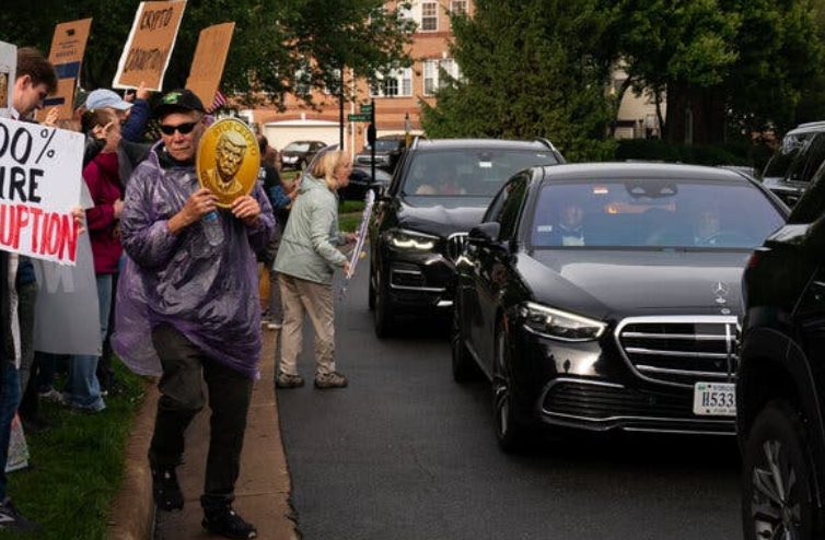 2025年5月22日,宾客抵达晚宴时遭到抗议者的阻拦。