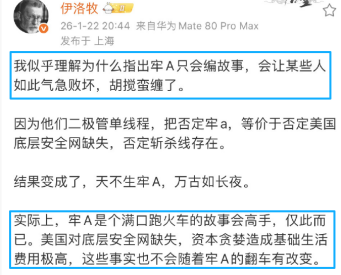 有人说牢A“只会编故事”“满嘴跑火车”,牢A只是分享了他在美国的所见所闻所感所思而已,真假本就无从考证,他们怎么知道牢A是“编故事”“满嘴跑火车”的呢?