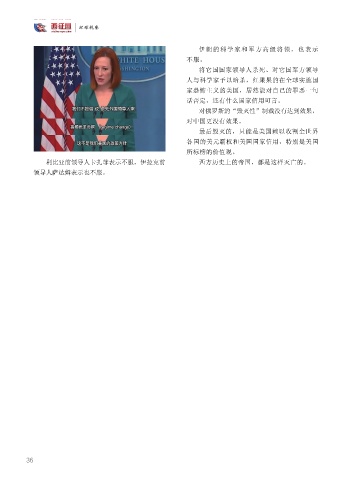 环球视察 伊朗的科学家和军方高级将领,也表示 不服。 将它国国家领导人杀死、对它国军方领导 人与科学家予以暗杀,红果果的在全球实施国 家恐怖主义的美国,居然能对自己的罪恶一句 话否定,还有什么国家信用可言。 对俄罗斯的“毁灭性”制裁没有达到效果, 对中国更没有效果。 最后毁灭的,只能是美国赖以收割全世界 各国的美元霸权和美国国家信用,特别是美国 所标榜的价值观。 利比亚前领导人卡扎菲表示不服,伊拉克前 西方历史上的帝国,都是这样灭亡的。 领导人萨达姆表示也不服。 36