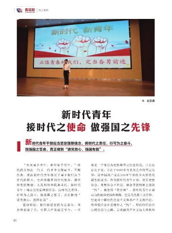 时代的薪火,它所承载着的时代使命,满怀 满生机活力。作为新时代青年干部,没有理想
